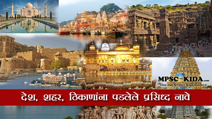 नेहमी परिक्षेला विचारले जाणारे देश, प्रदेश, ठिकाण, शहरे आणि त्यांना ओळखल्या जाणाऱ्या प्रसिध्द नावाने त्या ठिकाणाबद्दल वापरलेले नाव यांची थ्योडक्यात माहिती.